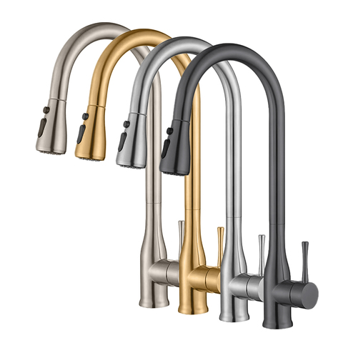 Robinet de cuisine professionnel en laiton non laqué double chaîne avec photocellule électrique Pul Set Pull Out Spray pour salle de bain